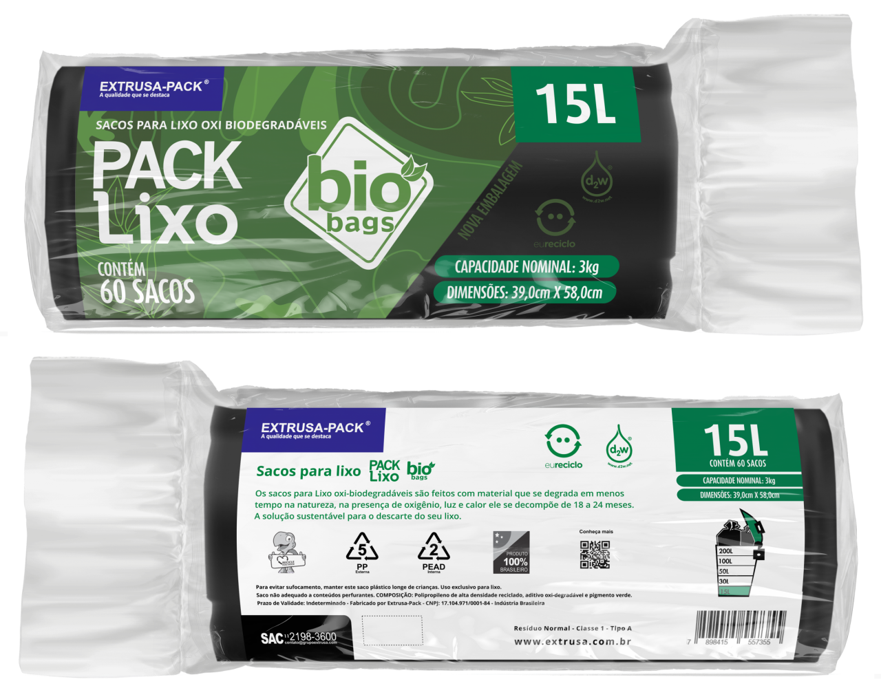 PACK LIXO BIOBAGS 015 LITROS PRETO 39X58 FD 10X60 UN